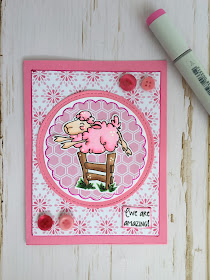 I was inspired by Cupcake Creations Challenge this week use the colors pink and white. Why not make a PINK lamb? I am thinking this is a perfect card for a little girl to boost her self confidence with the sentiment "EWE ARE AMAZING". I accented it with buttons because I LOVE buttons especially PINK ones!