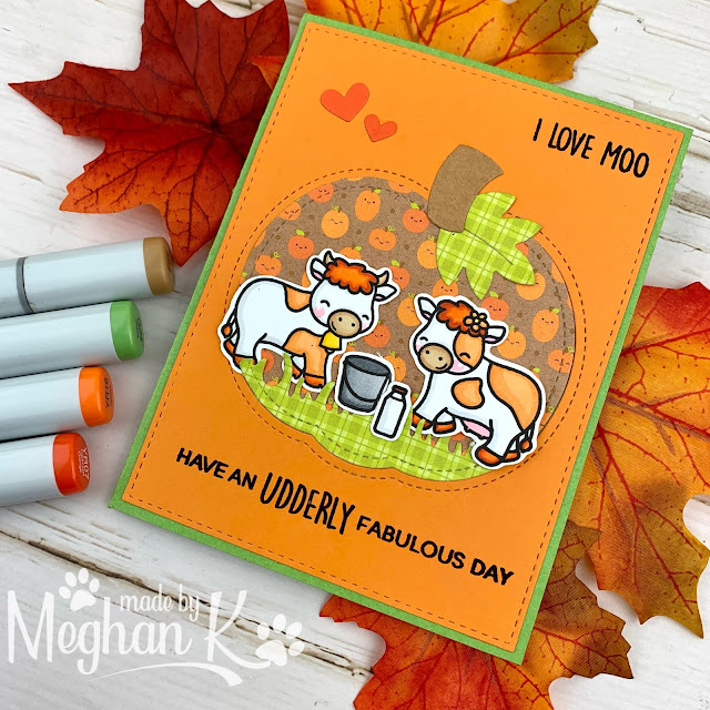 Meghan, love both your cards and how you used both the positive and negative cuts for pumpkin scenes from the two main cuts, creative and clever. Adorable scenes and I'd even invite purple spots on the cows. Adorable and fun cards. Thanks for sharing with us at Double Trouble and Jan's Digis Blog Challenges.